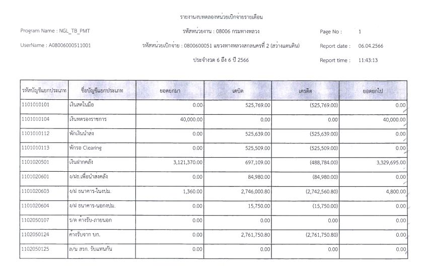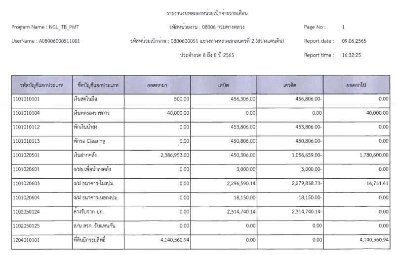 รายงานงบทดลองจากระบบ GFMIS ประจำเดือน มิถุนายน 2565