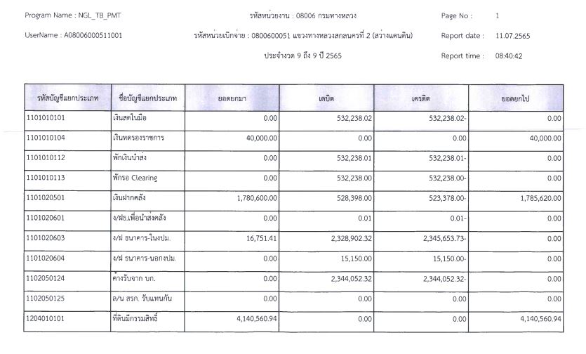 รายงานงบทดลองจากระบบ GFMIS ประจำเดือน กันยายน 2565
