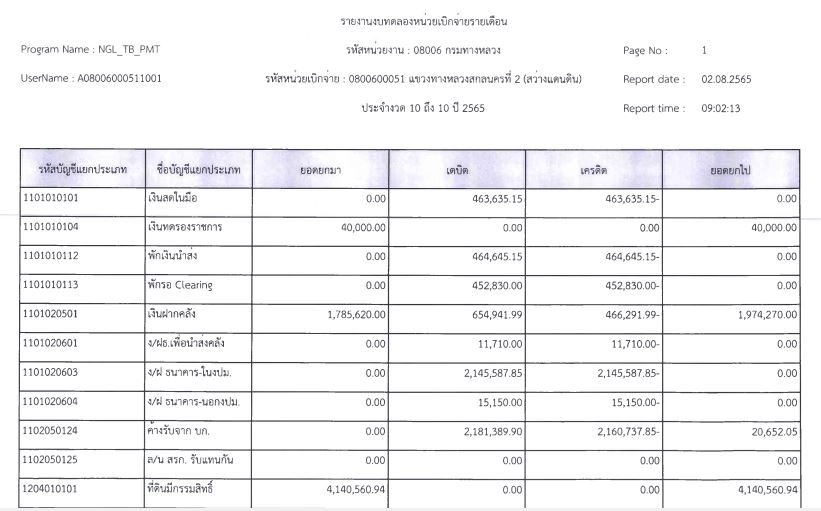 รายงานงบทดลองจากระบบ GFMIS ประจำเดือน ตุลาคม 2565