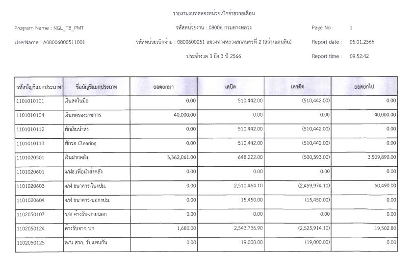 รายงานงบทดลองจากระบบ GFMIS ประจำเดือน มกราคม 2566