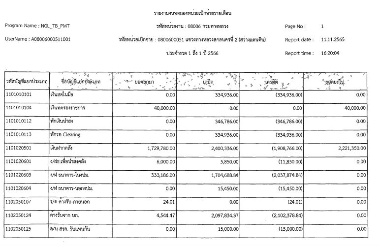 รายงานงบทดลองจากระบบ GFMIS ประจำเดือน พฤศจิกายน 2565