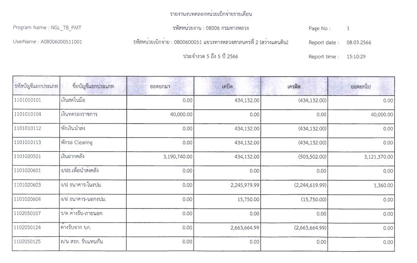 รายงานงบทดลองจากระบบ GFMIS ประจำเดือน มีนาคม 2566